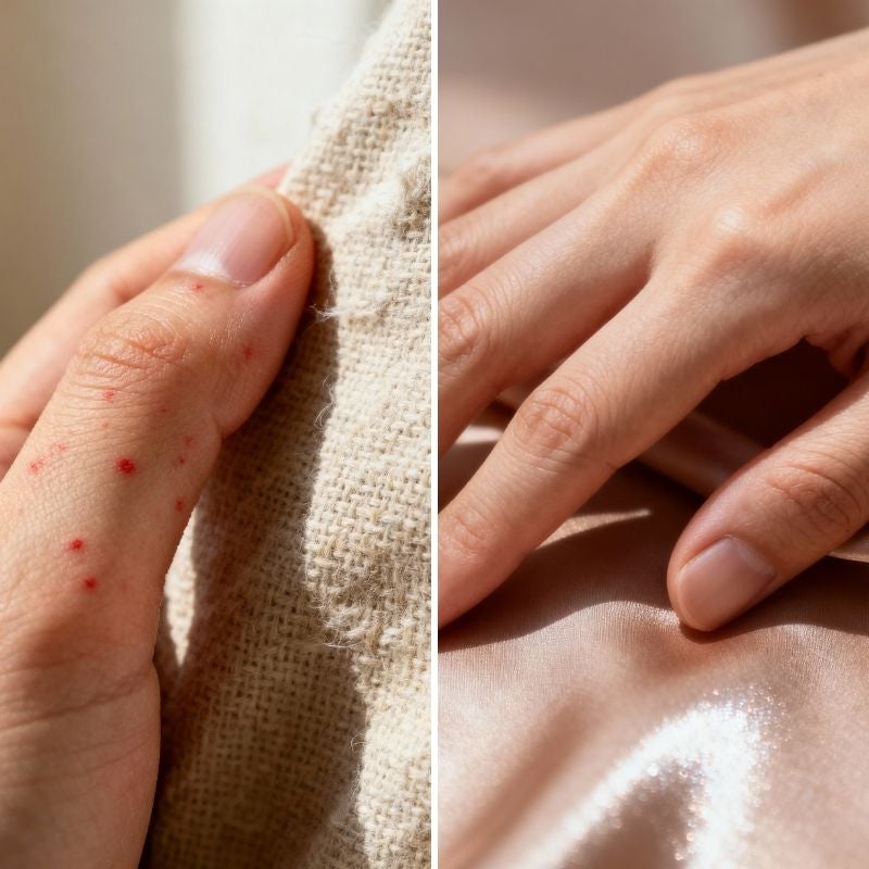 Viele Menschen mit empfindlicher Haut leiden unter mechanischen Hautreizungen durch raue Bettwäsche-Oberflächen. Normale Baumwolle oder Leinen können durch ihre Struktur Reibung erzeugen, die zu Rötungen und Juckreiz führt.