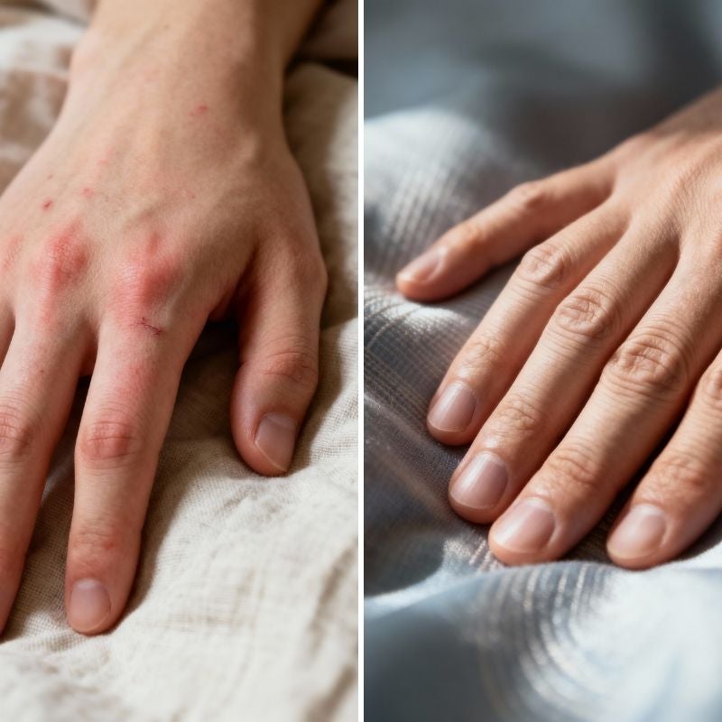 Das Resultat: Ihr Körper schwitzt nachts, die Feuchtigkeit bleibt im Stoff gefangen, Milben fühlen sich wohl und produzieren Allergene durch ihren Kot. Sie wachen morgens mit gereizter Haut, verstopfter Nase und dem Gefühl auf, als hätten Sie gar nicht geschlafen.
