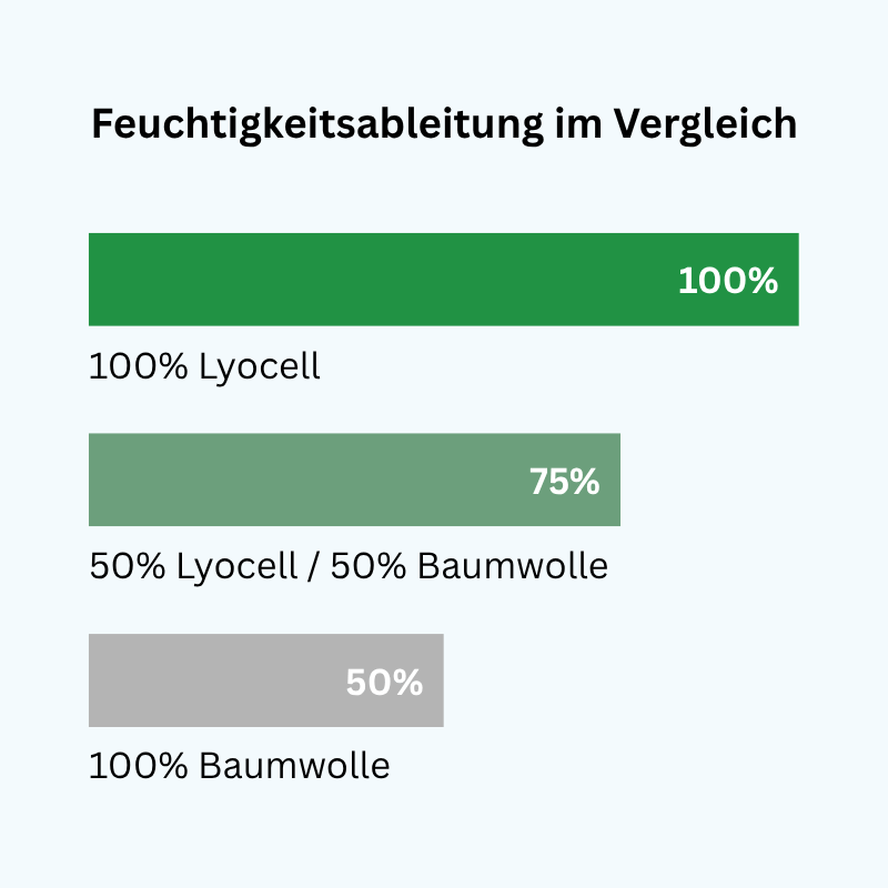 Die Lyocell/Baumwolle-Mischung ist ein guter Mittelweg für alle, die die Vorteile von Lyocell schätzen, aber einen etwas günstigeren Einstieg suchen. Die Wirkung ist deutlich besser als bei reiner Baumwolle, erreicht aber nicht die Spitzenwerte von 100% TENCEL™ Lyocell.