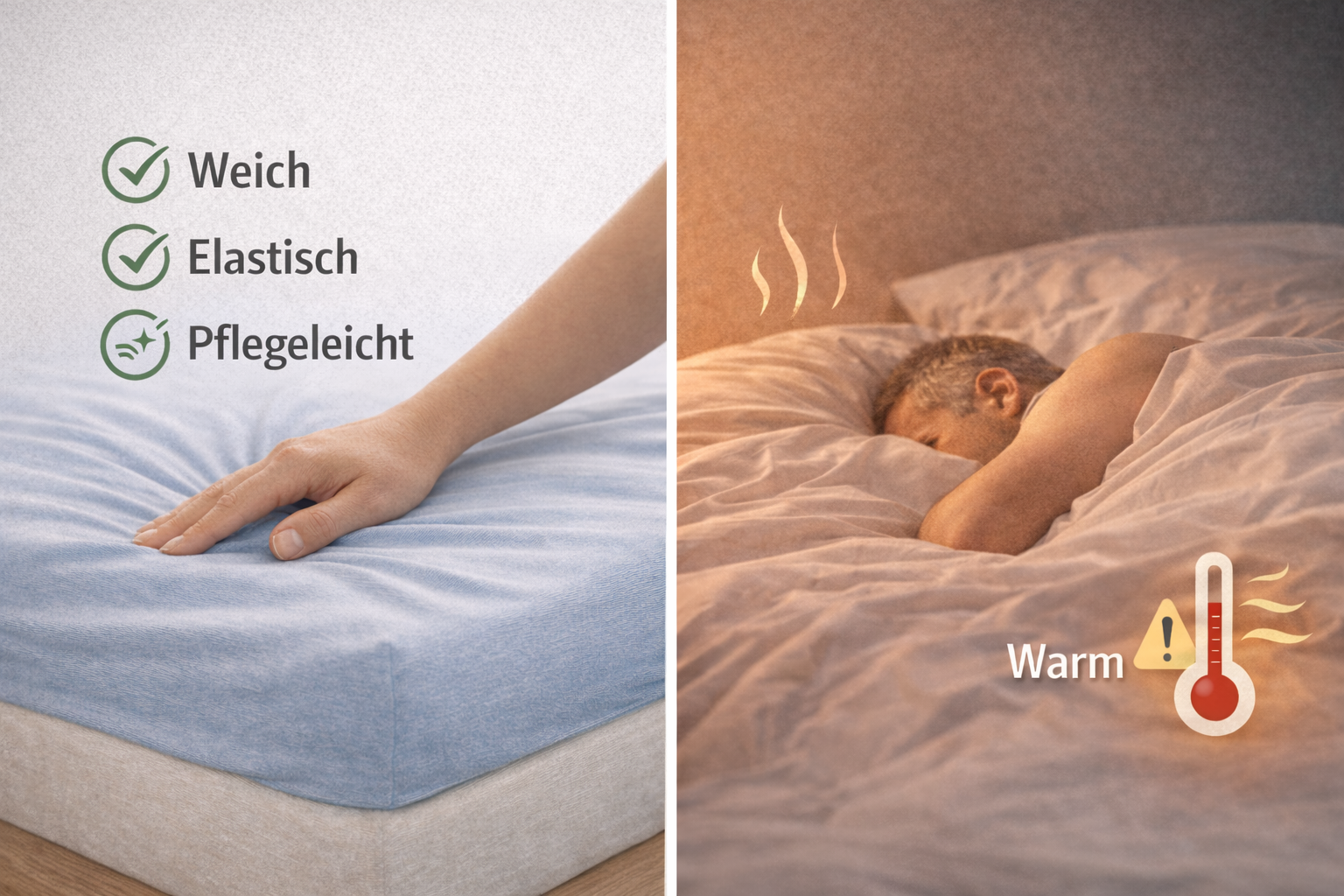 Jersey bieten ein weiches und elastisches Liegegefühl – ein solider Allrounder, aber mit Schwächen bei Wärme- und Feuchtigkeitsregulierung