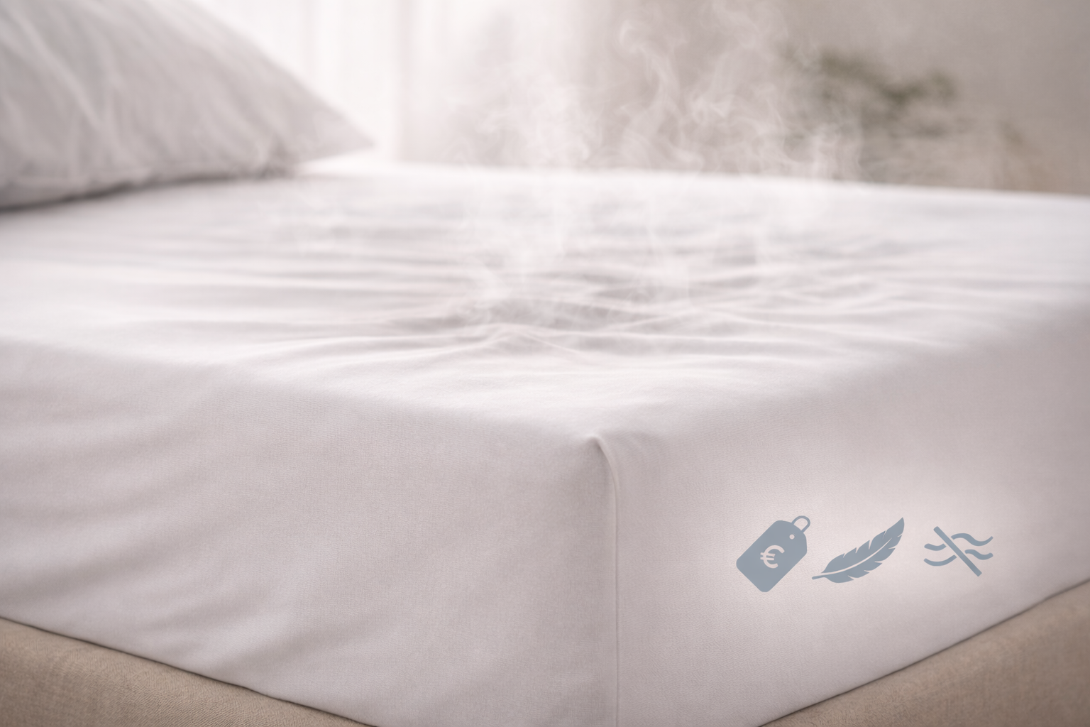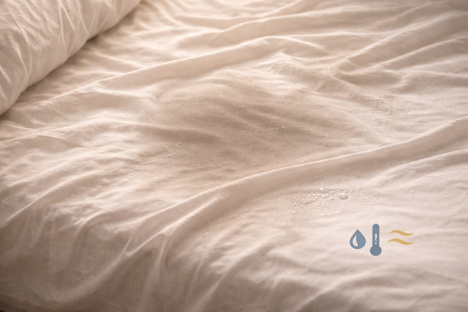 Viele klassische Spannbettlaken speichern Feuchtigkeit im Stoff, anstatt sie abzuleiten. Das führt zu: