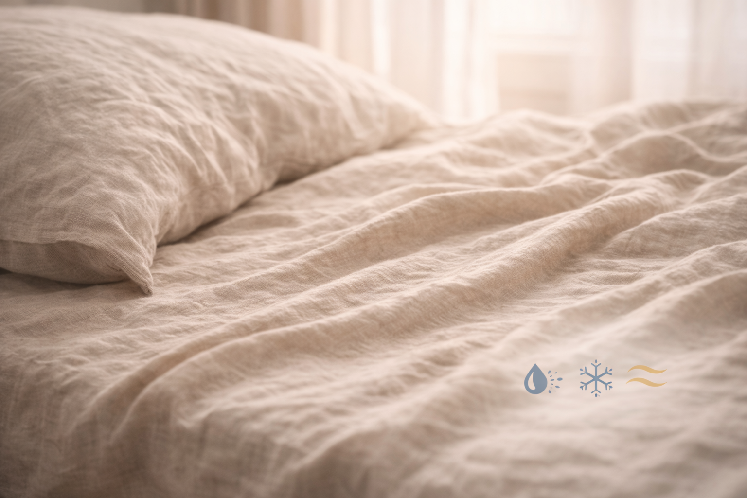 Entscheidend ist nicht nur die Decke, sondern vor allem, worauf du liegst. Ein falsches Spannbettlaken kann Feuchtigkeit direkt unter deinem Körper stauen – selbst wenn deine Decke eigentlich gut reguliert.